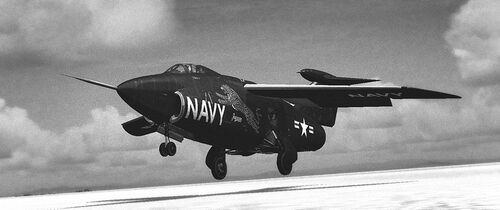 グラマンXF10F-1ジャガーさん、初飛行が1952年。朝鮮戦争真っ只中。日本の終戦が1945年なのでそれから7年後です。開発は1950年前には始まっていて終戦からわずか5年後に可変後退翼採用とは・・・なんか凄い( ̄ー ̄)はじめは着艦速度を落とす為にF8Uクルセ…